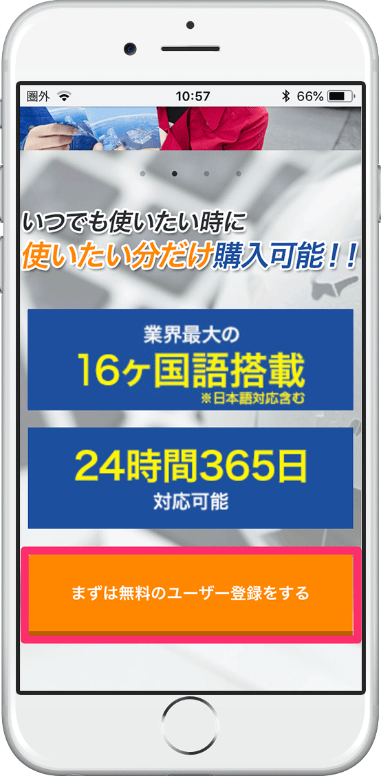 12.チャージが完了したら、「通訳サービスへ」をタップしてトップへ戻ります。