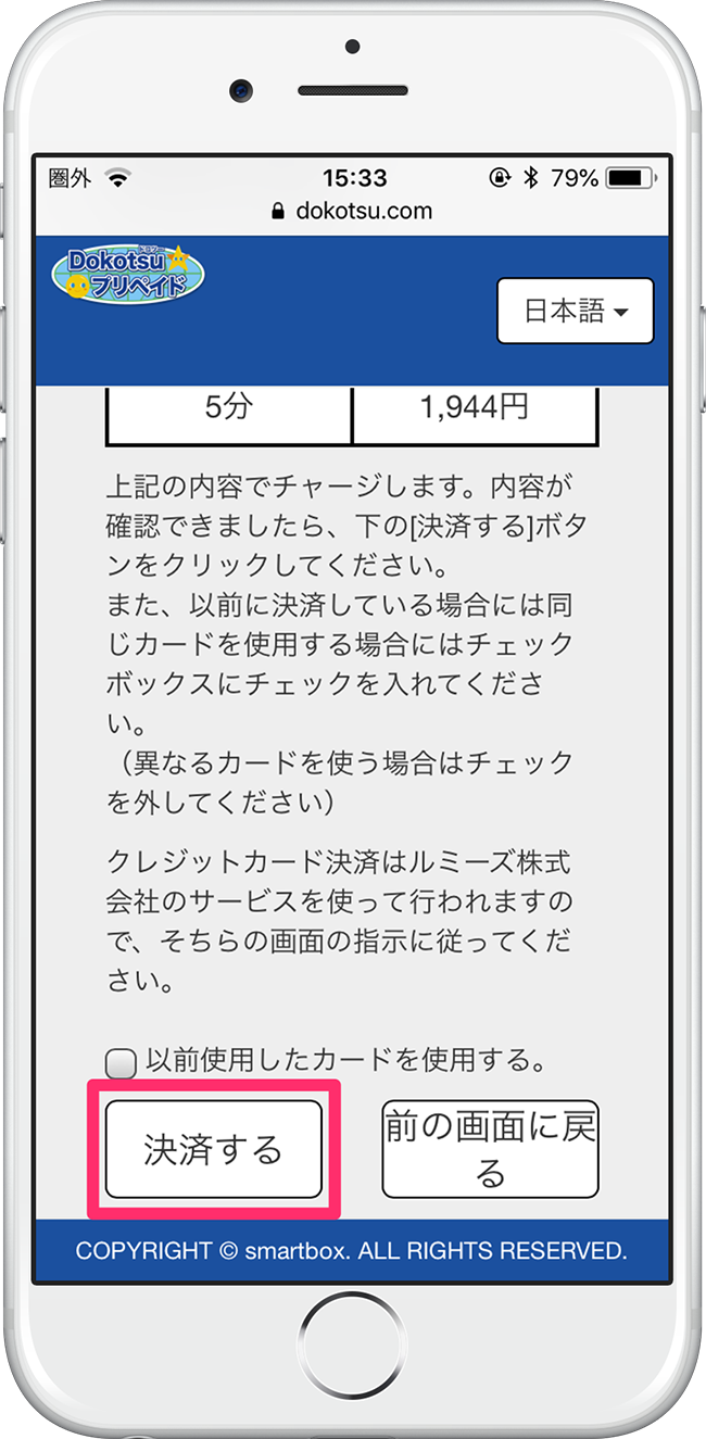 10.チャージ分数をご確認いただき「決算する」をタップしてください。
