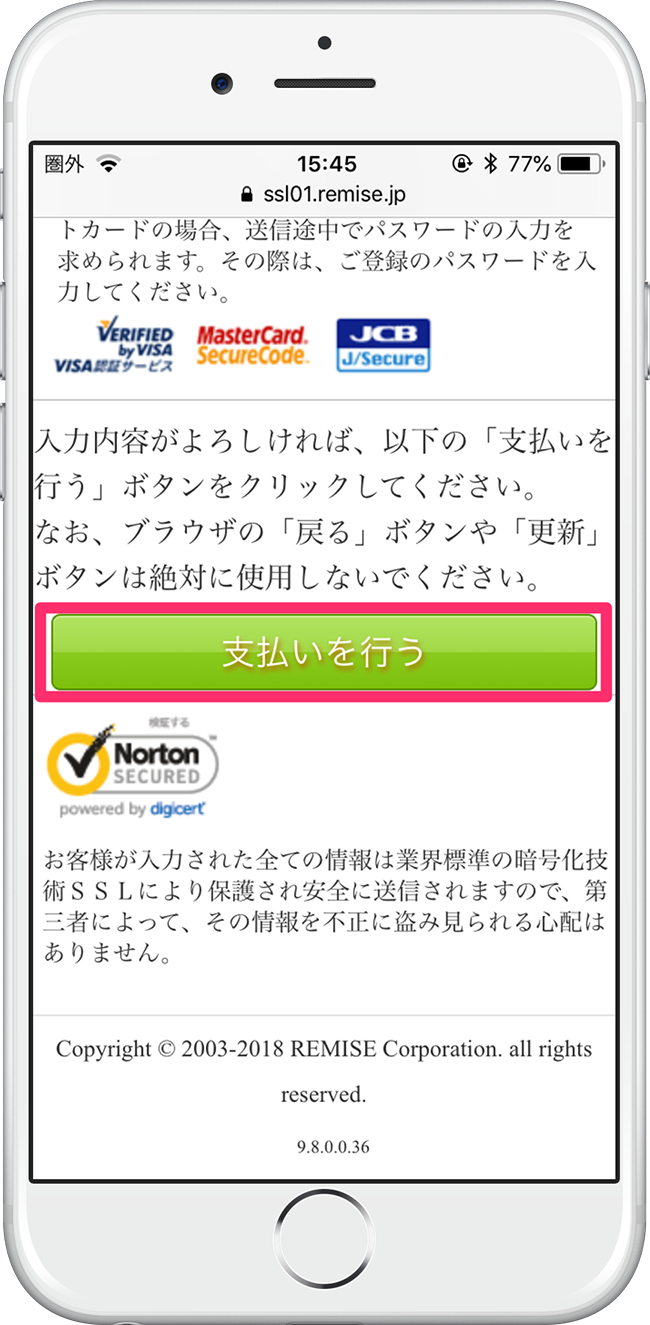 11.クレジットカード情報を入力し「支払いを行う」をタップしてください。