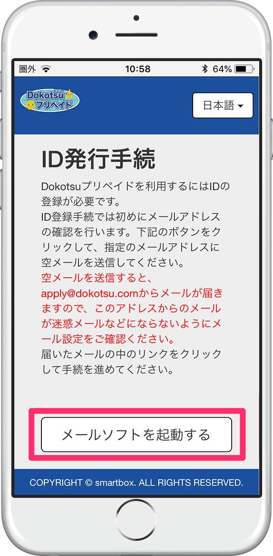 3.「メールソフトを起動する」を タップしメール送信ください。