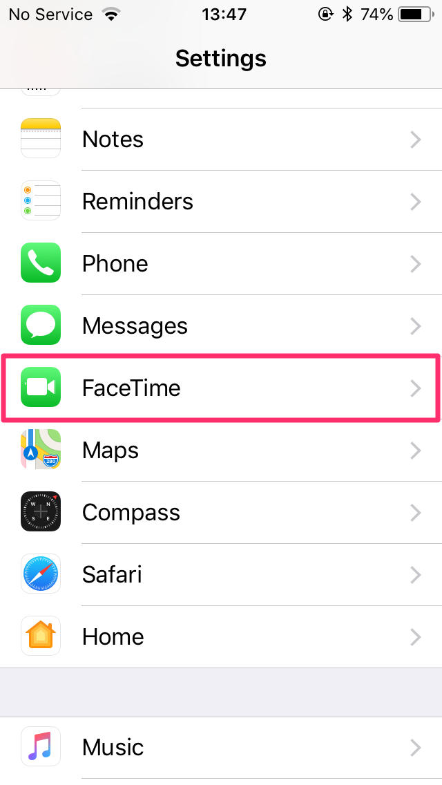 Please confirm "Settings" → "General" → "Function Restriction" → "FaceTime."
