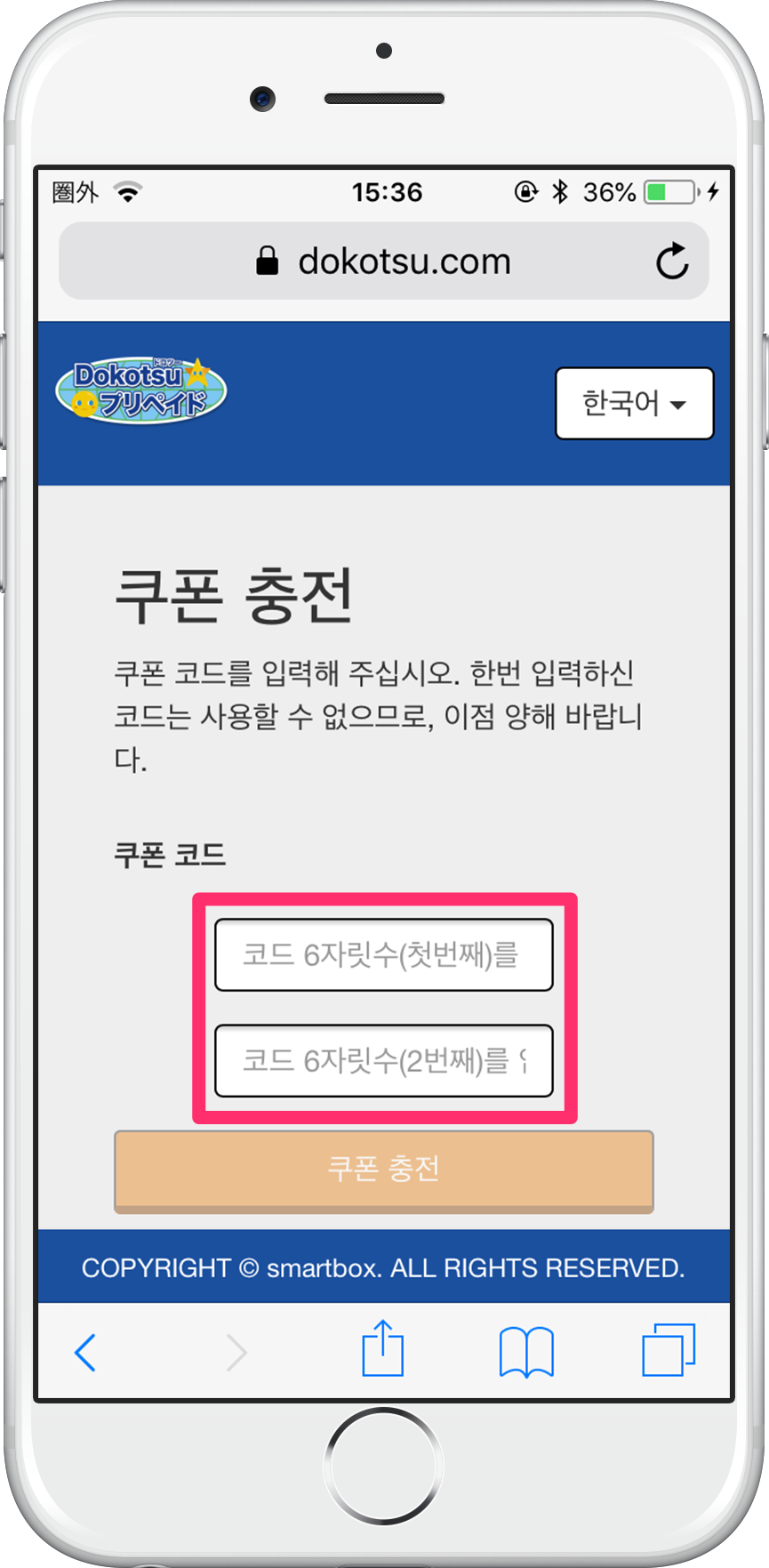 10.소지하신 쿠폰 코드를 6자리로 나누어 상하로 입력해 주세요.