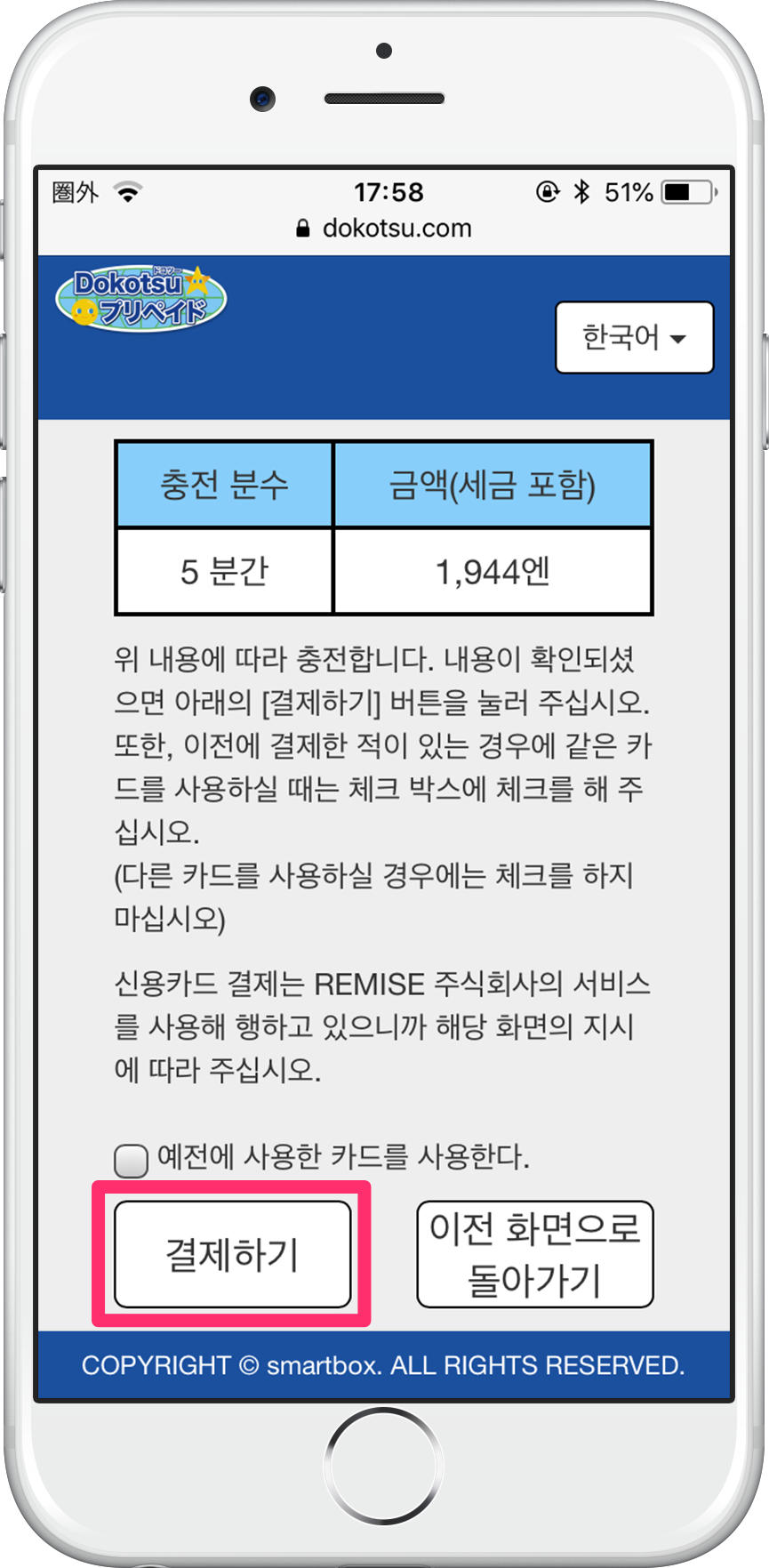 11.신용카드 정보를 입력하신 후 "지불하기"를 클릭해 주세요.