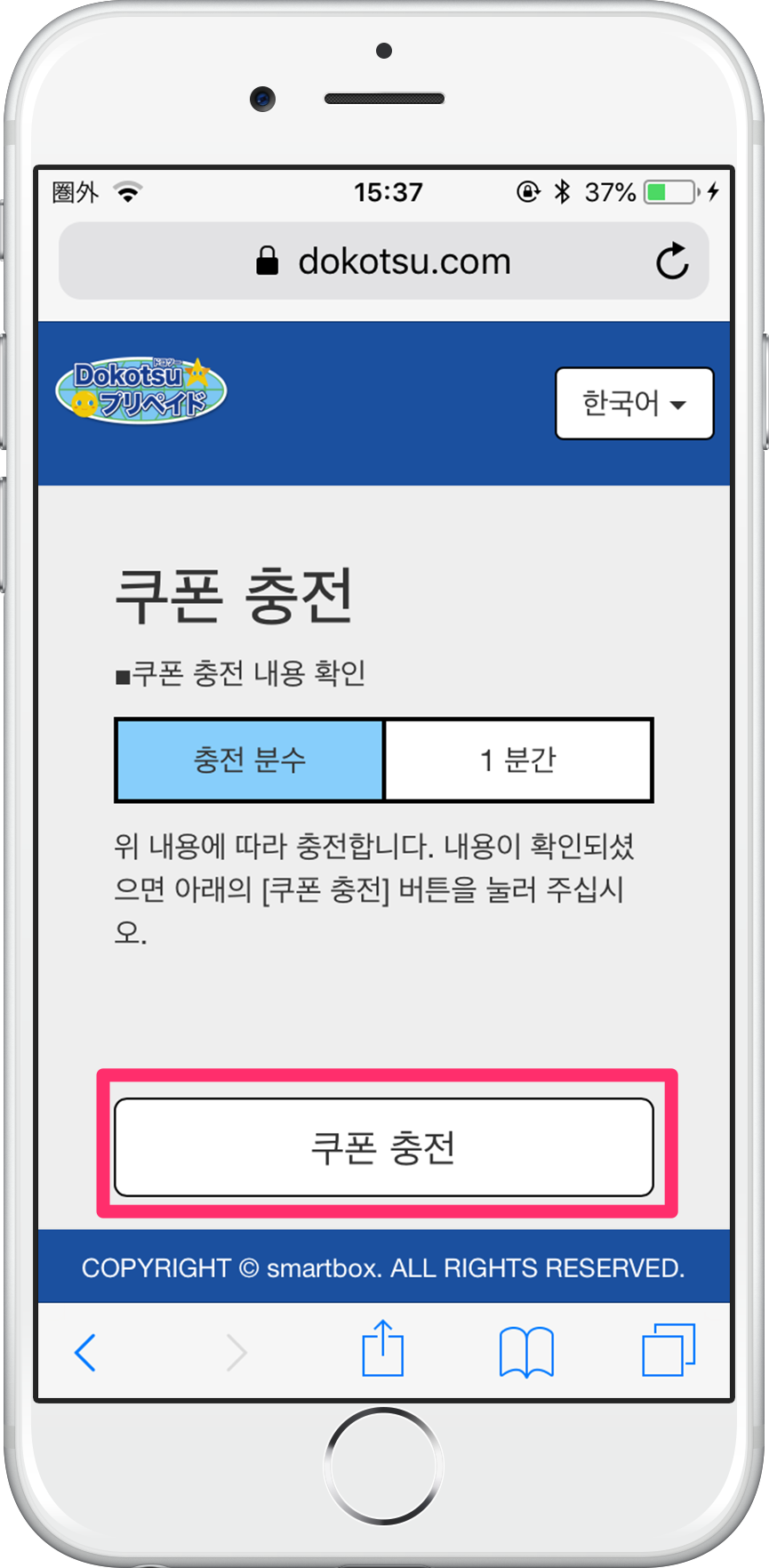 11.충전 분수를 확인하신 후 "쿠폰 충전하기"를 클릭하시면 충전이 완료됩니다.