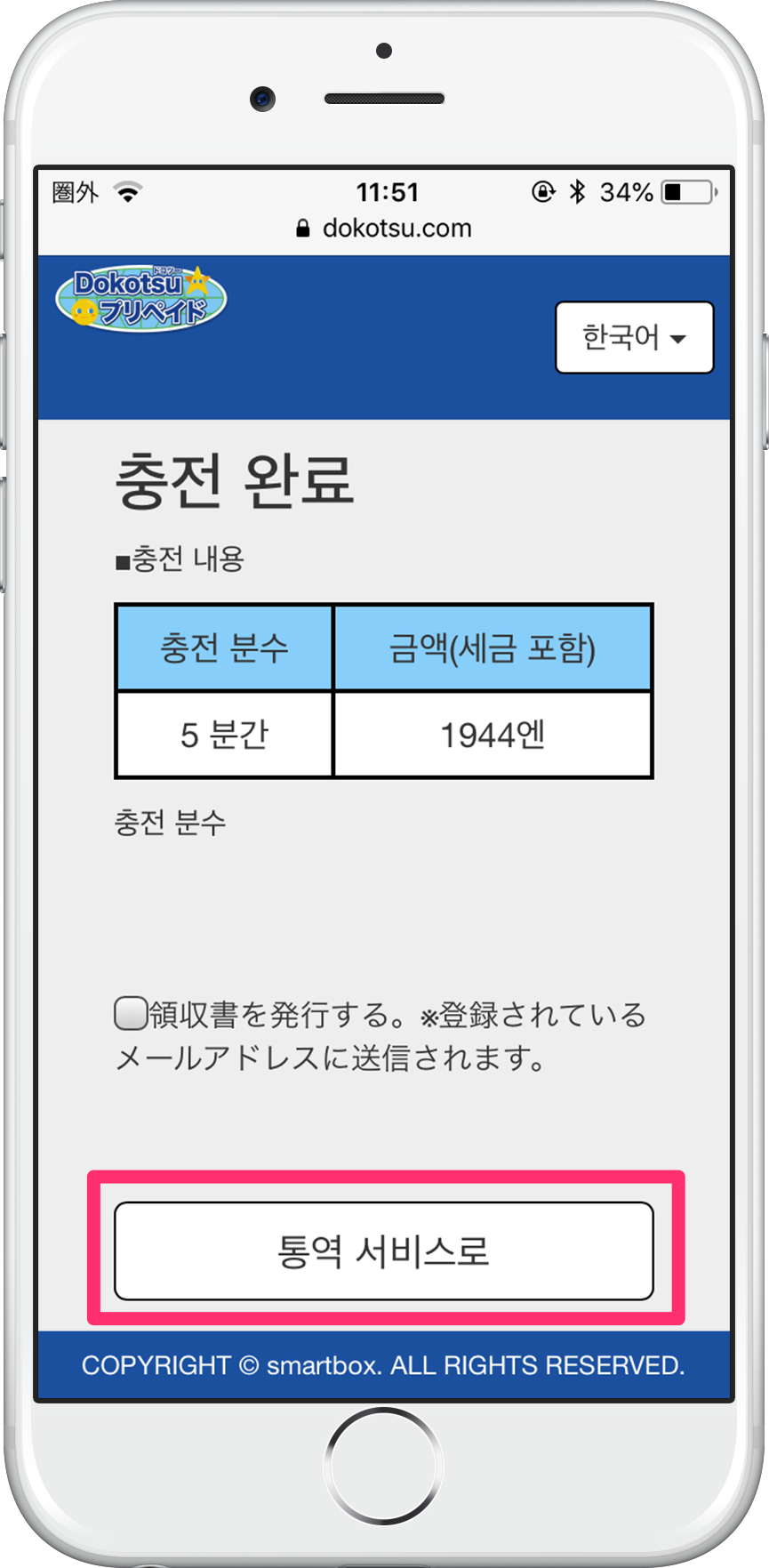 12.충전 완료 후 "통역 서비스"를 클릭하시면 톱으로 돌아갑니다.