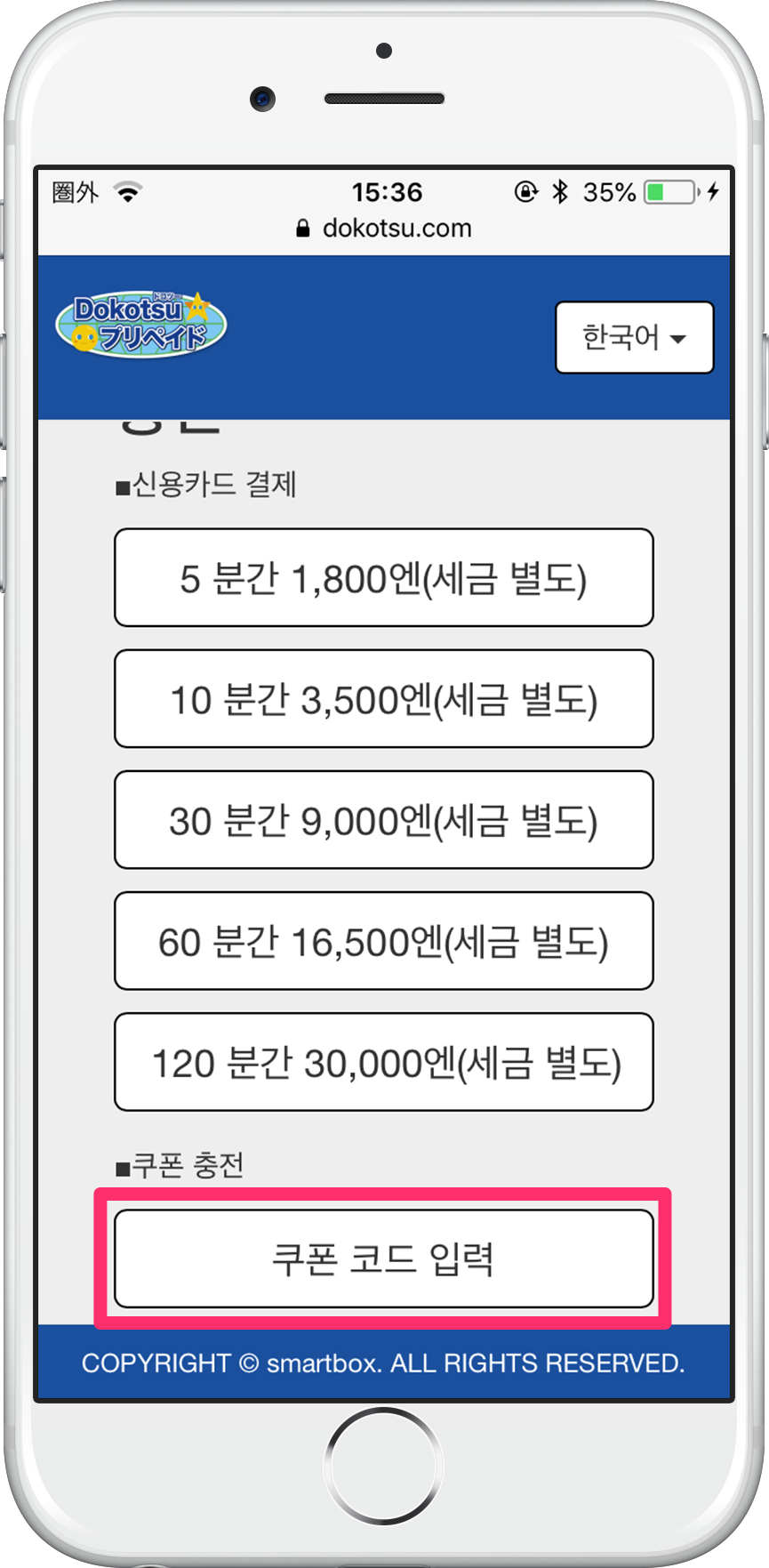 9.충전 화면 하부의 "쿠폰 코드 입력"을 클릭해 주세요.