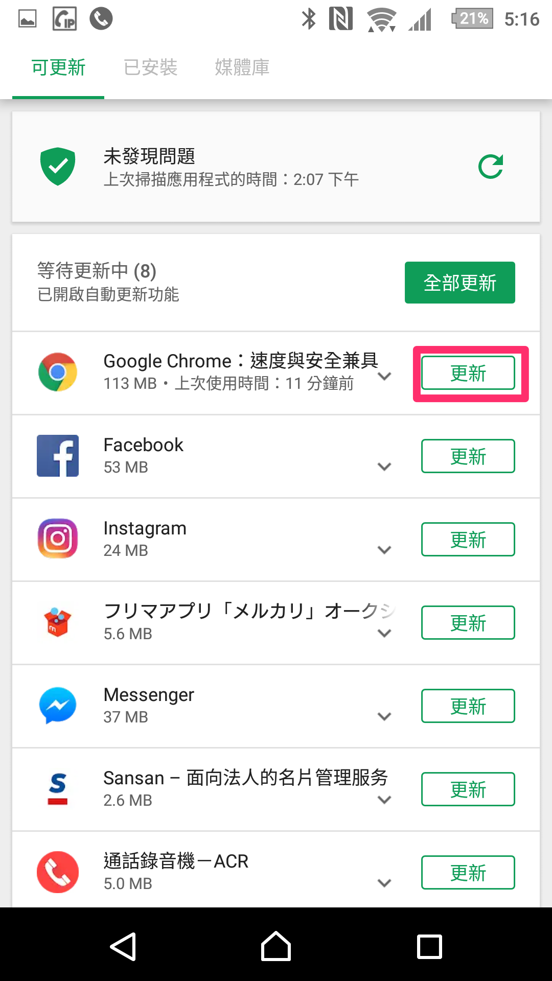 4.表示出Chrome的情況下,點觸“更新”。 -