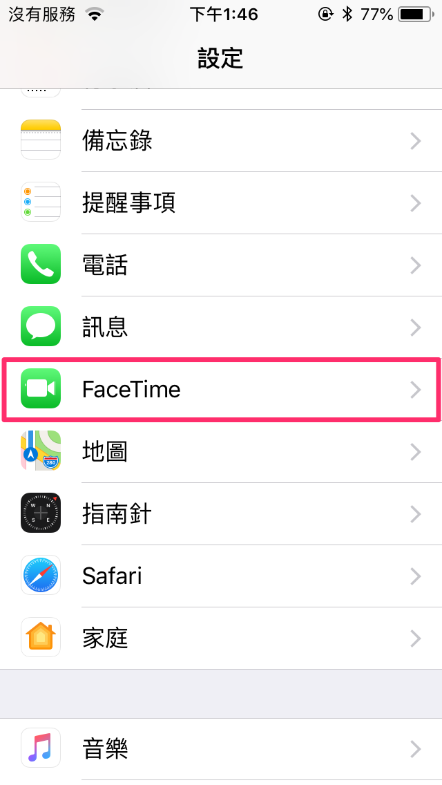 有可能“設定”→“一般”→“機能限制”→“FaceTime”處於機能限制的狀態。請予以確認。